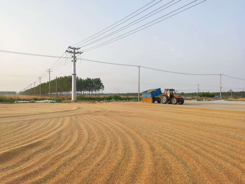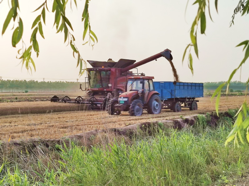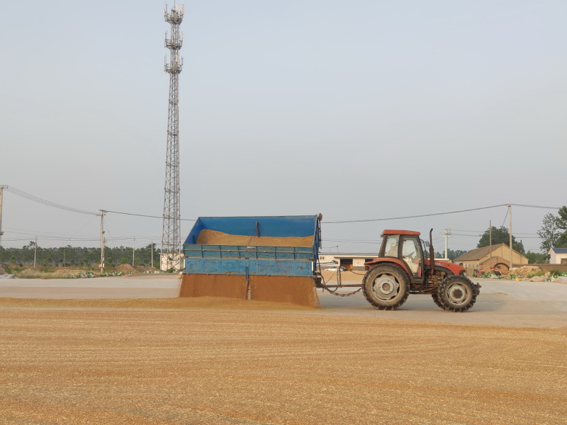 据悉,今年小麦穗数、粒数在去年的基础上实现了两项重要指标的双增,田间的小麦长势更是喜人良好,一派丰收在望的景象。放眼一望一块块整齐的麦海,一辆辆收割机在田野里穿梭,抓紧收获小麦,力争颗粒归仓。如今的麦收场面恢宏而又简洁,田野里除了收割机卸粮车场头机械在忙碌外,田间地头只不过是单位的管理人员,他们不用登机劳作,不用割边扫尾,只是简单地查看下收割质量和车辆调度,轻松而又自在。收割机喷涌出似激流瀑布般的金黄麦粒,粒粒饱满堆满了车厢的各个角落,预示着大丰收收储时节的来临。晒场上金黄色的麦粒在背景是金色农田的映衬下,显得格外耀眼。希望的田野,收获的季节,遍地金黄的小麦,让我们又感受到了今年一定又是一年丰收季。