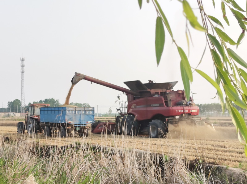 淮海农场有限公司是多年来从事麦稻连作生产的农场,多年来由于秸秆还田可以有效地提升作物的产量,增强土壤的疏松度,增产效应明显,加上农场农业机械化力量的强大,不仅收割机械的选型有利于切碎秸秆,而且后续的耕耙田旋田机械可以轻松地将秸秆均匀地散布在土壤中,大大化解了过去秸杆量大混不匀、影响当季作业质量带来的后续作物产量提升难题,从而在职工居民中形成了共识和理论认同,从而从思想源头上促进了禁烧工作。图为收割机在切碎作业和大农机在耕地时的镜头。