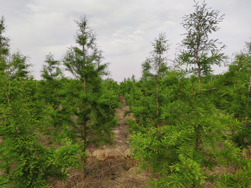 中山杉是杉科落羽杉属植物,树皮为长条片状脱落,棕色;枝条呈水平开展;树冠以圆锥形和伞状卵形为主,中山杉耐湿、耐腐蚀和耐盐碱,在园林绿化、生态建设和滩涂造林等许多领域中都可以发挥其重要作用。特别是由于因其树冠优美、绿色期长、耐水耐盐等生态特性,已被广泛应用于滩涂湿地、生态园区、城市绿地等环境绿化中。图为生长旺盛的中山杉杉树苗景观。
