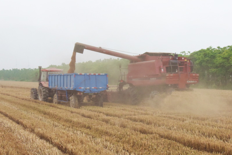 在6月5日下午淮海农场有限公司组织部分老干部来到农业单位的秋收现场,实地参观和体验现代农业大机械生产情况。