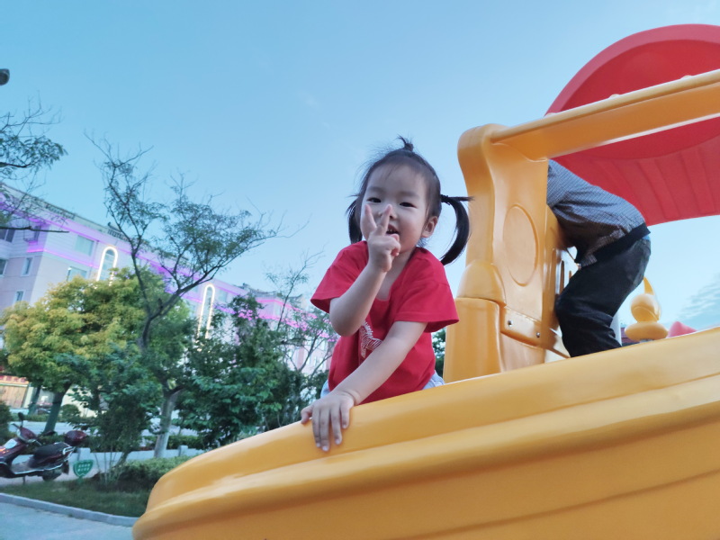 与此同时,通过家长们与孩子一起进行户外亲子互动时,玩滑滑梯还可以增进家长与孩子们之间的情感,让家长和孩子们在娱乐的过程中,相处得更加融洽,这些户外运动对孩子以后的发展有较大的益处。图为昨天傍晚,一个小女孩在滑滑梯上开心地摆出了PS造型。