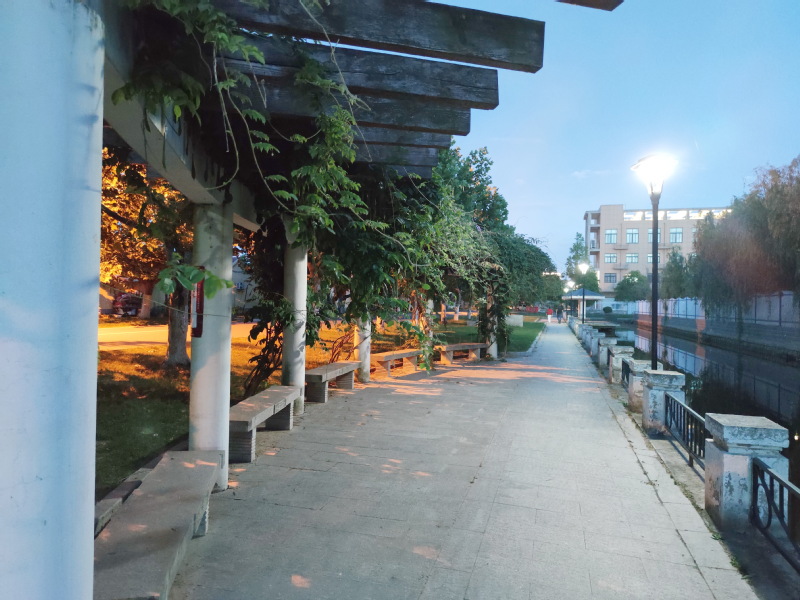 夜晚穿梭在河边的小道上,听着手机中的音乐,信步趋步前行,让人目不暇接,流连忘返。附近的居民真是打心眼里高兴:“我们的周边如画园,楼房似景点,赏心悦目的人居环境,就是最好的民心工程。”目前农场的河道环境变得整洁漂亮,社区居民和老人,在河道边垂钓散步,也让生活质量不断提升。图为白天和夜晚群乐路旁石块驳岸的河边小道。