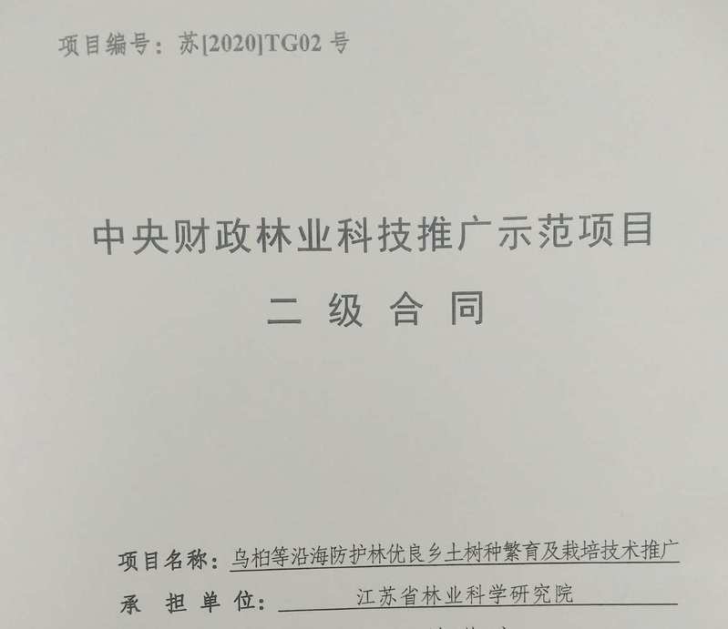 乌桕等沿海防护林优良树种繁育及栽培技术推广项目自去年起对接,受疫情影响,于6月1日正式签订合作协议。项目起止时间自2020年1月至2022年12月。项目面积85亩,主要繁育“紫燕”、苏杉1号、榔榆N27家系、苏柳1011等良种苗木15万株。省林科院划拨项目实施经费19万元,主要用于优良品种繁育及先进实用技术与标准的应用示范费用。项目实施对促进沿海林业发展、维护湿地生态环境、治理水土流失具有重要意义,研究成果归双方共有。