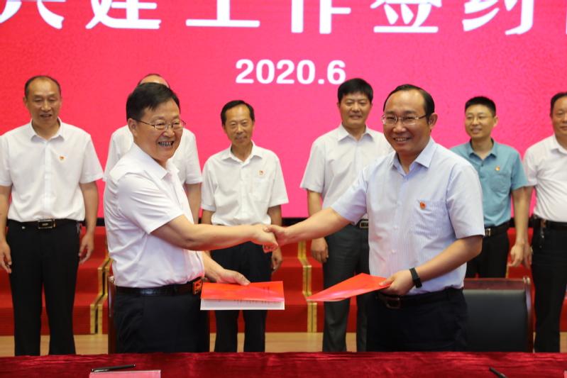 会上,滨淮农场有限公司党委书记李德利,滨淮镇党委书记王荣峰代表双方签署了共驻共建工作协议。