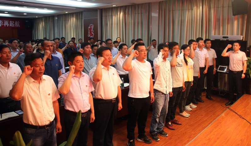 纪委书记戴学林宣读了新党员名单,带领新党员宣誓及老党员重温入党誓词;并宣读了党风政风监督员名单。副总经理、工会主席田峰秀宣读了先进基层党组织等表彰决定和第四届最美新洋人、最美家庭。