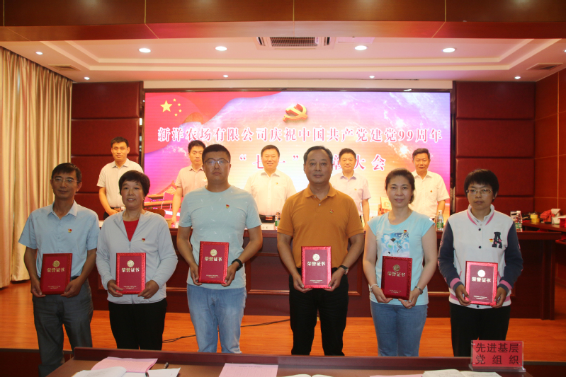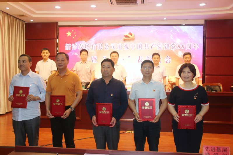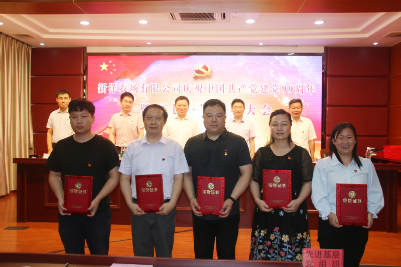 党委书记、董事长陈守军作纪念讲话。他指出,今天隆重举行庆祝建党99周年暨“七一”表彰大会,旨在重温党的光辉历程,传承党的优良传统,表彰先进典型,激励各级党组织和广大党员进一步振奋精神、同心同德、克难奋进。他要求,一要缅怀过去,牢记宗旨,筑牢跟党走的理想信念。全体党员要高举新时代中国特色社会主义伟大旗帜,以最坚定、最自觉、最实在的行动向党的生日献礼。二要解放思想,总结经验,抓好当前重点工作不放松。抓好疫情防控不放松;抓好基层党组织强基和保障建设;抓好党风廉政建设和完善监督体系。三要科学筹划,理顺主次,确保完成全年工作目标。继续抓好农业生产,再创历史新高;抓好农场产业发展,提升经济总量;抓好民生建设,建设美丽农场。