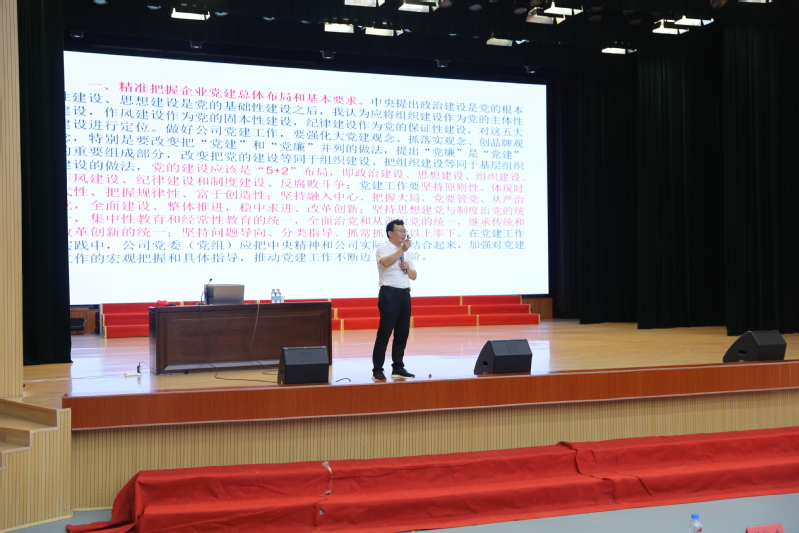 曹荣琪是江苏省首批“党课名师”,江苏省理论宣讲先进个人,南通市十九大精神宣讲团成员。讲课中,曹荣琪从创新国有企业党建工作的9个认识、掌握基层组织工作条例的9大重点、做好滨淮农场公司优秀党员的9点建议三个层次,深入浅出的讲解了《中国共产党国有企业基层组织工作条例》。《条例》共9章41条,涵盖了国有企业党的建设各个方面。《条例》阐明了国有企业党组织工作的指导思想和工作原则,规范了国有企业党组织的设置,规定了国有企业党组织的主要职责,明确了加强国有企业党员队伍建设的有关要求。曹荣琪在讲解中提到,党的建设应该是“5+2”布局,即政治建设、思想建设、组织建设、作风建设、纪律建设和制度建设、反腐败斗争;党建工作要坚持原则性、体现时代性、把握规律性、富于创造性。推动国有企业深化改革,增强国有经济竞争力、创新力、控制力、影响力、抗风险能力,为做强做优做大国有资本提供坚强政治和组织保证,使国有企业成为党和国家最可信赖的依靠力量