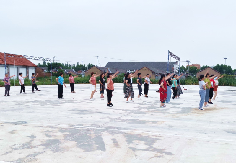 与此同时,农场社区除在职工休闲体育运动广场外,还在淮海公园、文广苑小区、幸福小区、城西居委会等多地广场及小区间安装了整套健身器材,不仅给居民提供了休闲之余强身健体的平台,还给小区增添了一道靓丽的健身体育风采。图为城南社区职工在修理厂门前的广场上开辟新跳舞战场时的镜头。