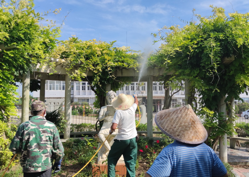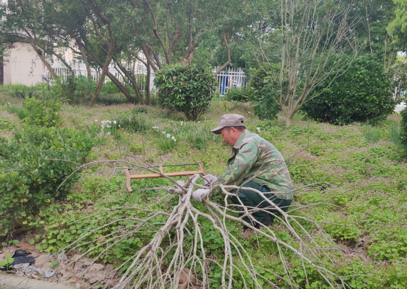 在园林绿化栽植养护过程中,由于树木成活率的原因或由于环境恶劣、病虫损伤等情况常常会导致一些栽植和正常生长的树木枯死、病死,那些枯死病死或是残枝秃桩不仅影响美观,还存在安全隐患,因此对这部分树木及时进行请理显得十分重要。7月29日下午,淮海农场有限公司绿化环卫所通过巡查,组织人员加大对枯死绿化树木的排查和清除力度,让枯死树木既不再成为影响职工居民的观瞻,也让有可能造成的安全隐患得以消除。同时绿化环卫所的同志,还以防范病虫危害为抓手,对辖区苗木进行夏季病虫害的药物防治,确保树木的正常健壮生长。图为绿化环卫所的同志在清除枯死苗木和对绿化苗木进行药物防治时的镜头。