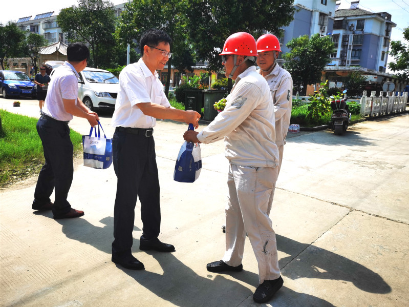 8月3日,宝应湖农场公司党委书记李乾清慰问了施工作业的电工,董事长赵建坤慰问了刘圩居委会保洁员,副总经理姚海杰慰问了垃圾处理站环卫工,纪委书记王芹慰问了防汛值班员。每到一处,他们不仅给一线的职工送上防暑慰问品,还深入现场,开展安全生产、防暑降温和中暑应急知识宣传教育,并叮嘱职工们要合理调整作息时间,确保身体健康和工作安全。一线职工接到送来的慰问品纷纷表示,在强烈的阳光照射下,虽然感到闷热难受,但感受到了组织送来的关怀和关爱,并保证一定会克服酷暑高温,坚守岗位,尽职尽责,积极做好每一项工作。
