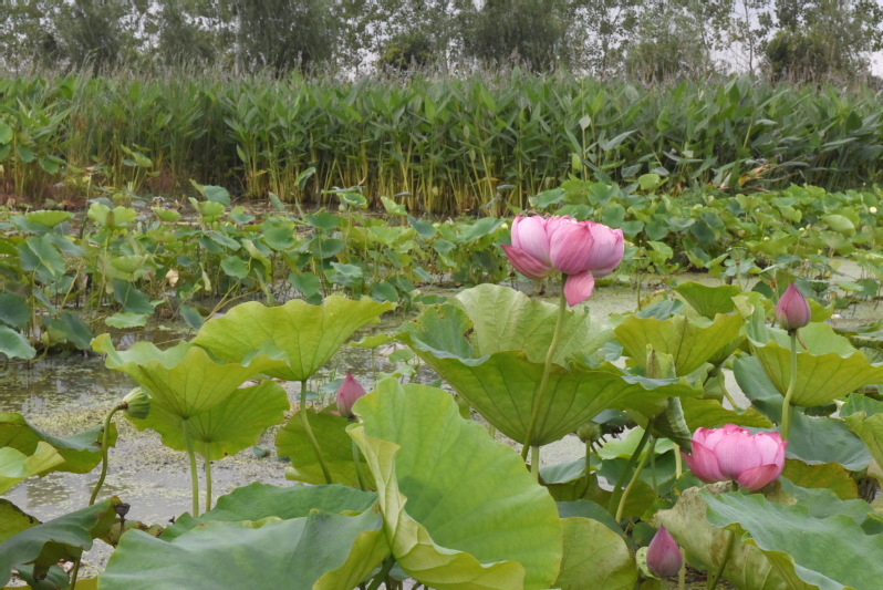 爱莲苑是以水生观赏植物为主的大型苑区,除荷花外,还拥有各类荷花、睡莲、梭鱼草、千屈菜、水葱、菖蒲及芦叶花竹等众多的水生观赏植物,但这里最耀眼的还是大型荷花,这里培育繁殖生长的10个荷花新品种不仅获得了全国荷花繁育大奖,还将荷花的销售走出国门,畅销海外10多个国家,让淮海爱莲苑成为了农场外向型经济的典范。