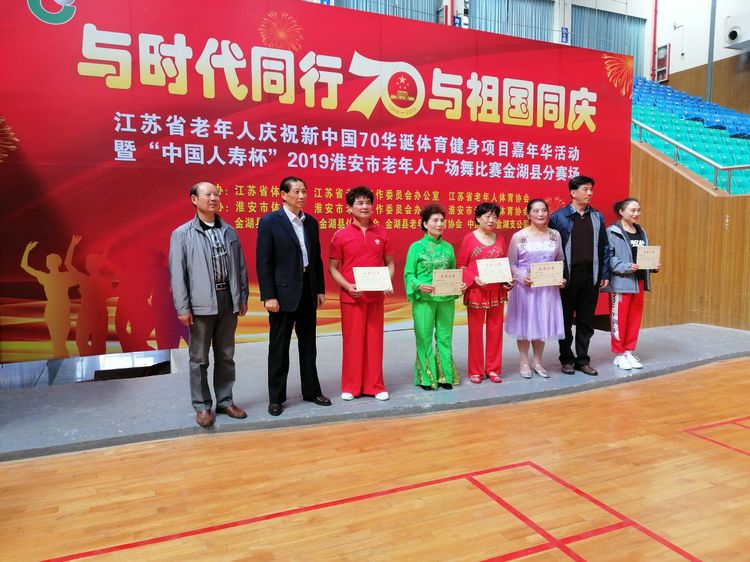 1月,农场迎春演出;5月,国际马拉松比赛金湖站的加油点演出、县达人秀比赛;6-7月,金湖荷花节演出;9月,金湖县全民健身展示活动、农场广场舞比赛;10月,淮安市老年广场舞比赛;12月,淮安市第一届民俗运动会腰鼓比赛、金湖县邮政演出活动等等,2019年,宝应湖农场腰鼓队的演出行程被排得满满当当。腰鼓队先后获得了金湖县老年广场舞比赛二等奖,金湖县体育局健身操比赛三等奖,还代表金湖县参加淮安市第一届民俗运动会腰鼓比赛,获得三等奖。