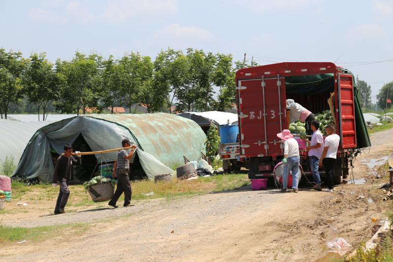 因保护土壤结构不使盐碱上升对土地实行水旱轮作的需要,新洋分公司将耕地分期承包给瓜农种植西瓜。这些瓜农种植西瓜很有经验,种植的西瓜口感好,甜度适中,深受客户青睐。前一阶段因受疫情影响,给西瓜销售造成了一定的困难。随着疫情的好转,西瓜销售由滞转畅,价格也一路看好,瓜农一个个喜笑颜开。