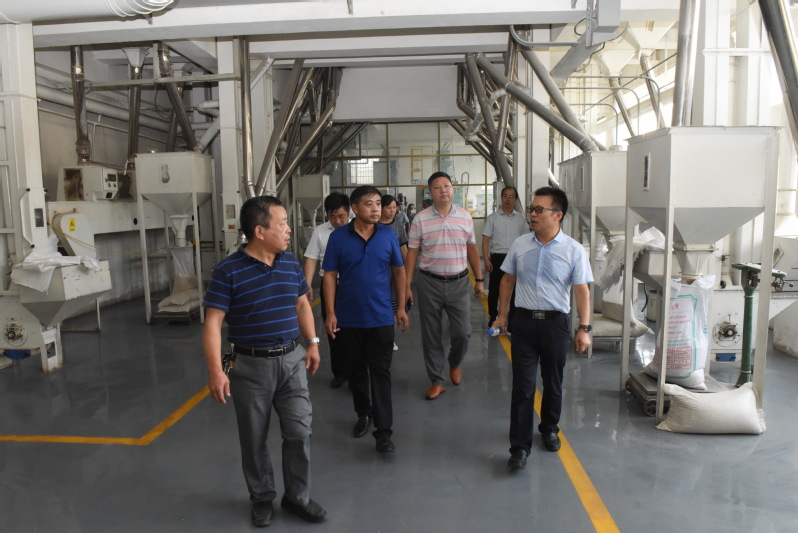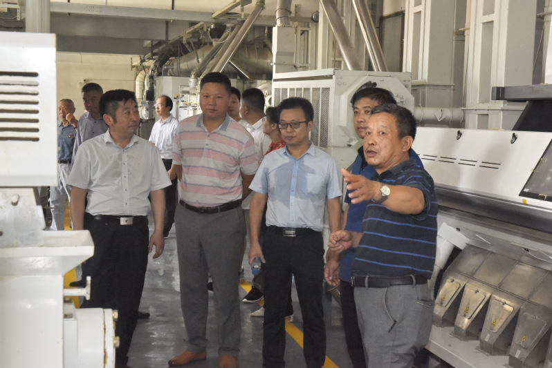 在淮海公司潘长干陪同客人一行参观了粮食生产加工设备、仓储、物流、烘干等现场。潘长干详细向来参观的客人介绍了公司的粮食生产加工储藏销售和市场占有率及品牌建设情况,并对公司生产的相关品牌产品,潘长干饶有兴趣地向客人进行了介绍。复兴圩农场客人一行对淮海米厂的机械化生产规模、渠星品牌的生产包装及发展前景和取得的市场成绩表示赞赏。认为淮海公司拥有完善的服务和管理体系,创新能力强,员工素质高,企业发展后劲大。图为复兴圩客人一行在淮海公司生产流水线上考察。