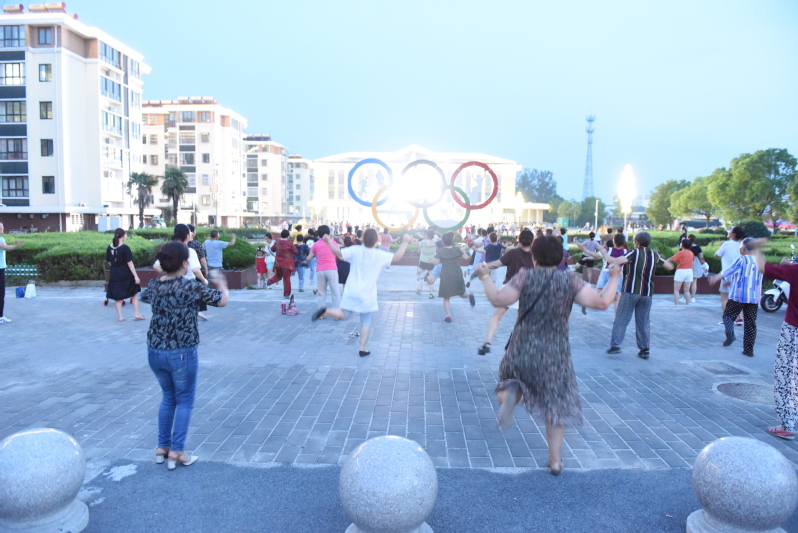 每天傍晚,在淮海农场文化广场和职工休闲体育运动广场上,就是拥进了众多的周边职工居民和地方群众,他们共同来到广场上,进行跳舞、散步、跑步、器材运动、篮球、舞蹈等适合自身需求的体育运动,让农场的两大广场变成了欢乐的海洋。我们看到,有以中老年舞蹈爱好者汇集于此,踏着悦耳的节拍跳起欢快的广场舞的;有年轻一点的职工居民,在爽滑的舞蹈池上,跳着专业的交谊舞的;也有的职工居民带着老人或是小孩,在广场上散步游玩的。他们各自的身姿和热烈的气氛引来观众钦羡的目光。特别是每天上演的广场舞健身操,在广场的四五处区域不同上演,成为淮海夜晚最美的风景。广场舞健身操的普及,让不少路人也愉快地加入其中载歌载舞,队伍逐步扩大,让更多的职工居民融入到农场健康体育文化之中,享受着我运动、我健身、我快乐的体育运动氛围。图为职工居民在广场上运动的姿态和身影。