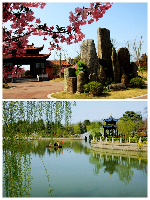 占地近300亩的金龙湾生态文化园之前曾是新洋农场的种猪场,与公园没有沾不到半点边,金龙湾就是在一张白纸上设计和建设起来的。农场领导召集有关业余和专业人员,遵照生态与文化相统一的宗旨和融观赏、休闲、健身为一体的要求,反复钻研我国的园林艺术,对设计方案反复研讨、反复推敲、反复修改,最终形成了现在的古韵与现代气息相融合、生态与文化相融洽、树木与花草相映衬、山(假山)与水相得益彰、亭台楼阁布局精巧的格局,大气而不失温婉,精美而不失高雅,公园虽小却散发出西湖风味,诗情画意蕴含期间。