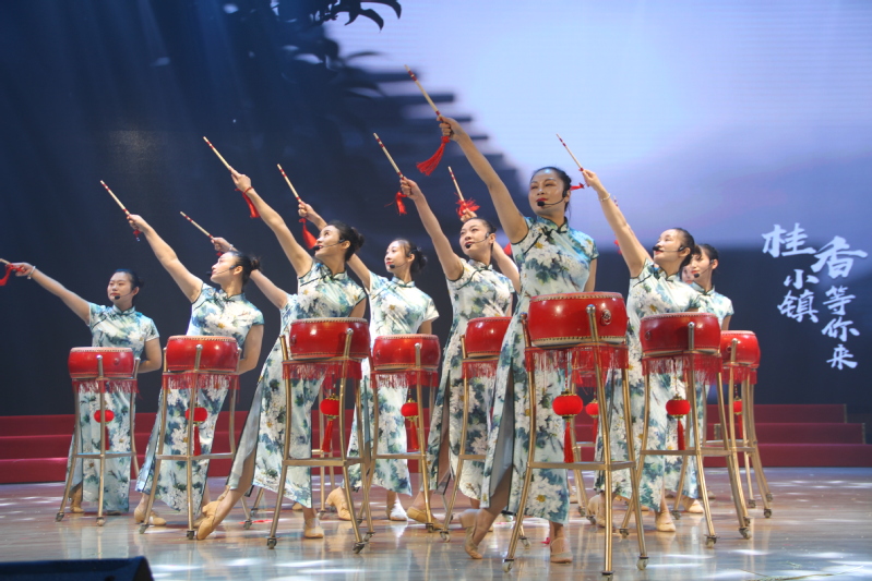 晚上7点,联欢晚会在大型歌舞《庆丰收迎小康双胜利——盛世欢歌》中拉开帷幕。整台晚会主题突出,反映了农场现代农业建设成果和人文风貌。尤其是打鼓说唱《桂香小镇等你来》,充分展示了滨淮农场浓厚的“桂香”文化。民乐合奏《桂乡情韵》在观众意犹未尽中为晚会落下帷幕。