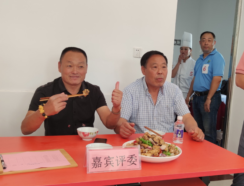 县杂文学会一行有的在现场纷纷举起相机,记录下这一偶遇的一刻;有的掏出小本子,在与公司领导的交谈中,记录下生动的话语;还有的与公司员工进行互动,营造着比赛的氛围。特别是当第一组选手把经过一系列蒸、煮、炒、拌等烹饪动作且色香味俱全的美食端上桌面上时,大家纷纷举起相机记录着参赛评委的品尝镜头。