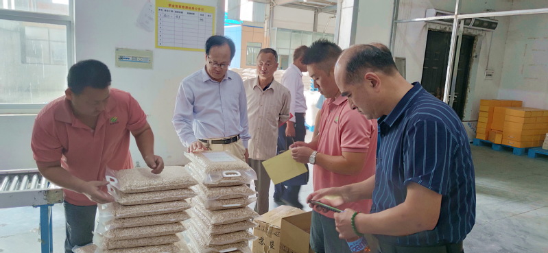9月26日上午,射阳县杂文学会一行在苏垦米业集团淮海公司生产车间参观时,发现这个以生产大米车间的一角,几名员工正在包装与大米样式不同的产品,走近一瞧,原来是员工们正在包装富硒麦片这一新品,这一镜头引起了大家广泛的兴趣。