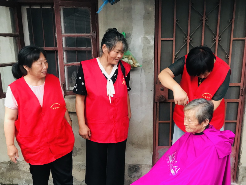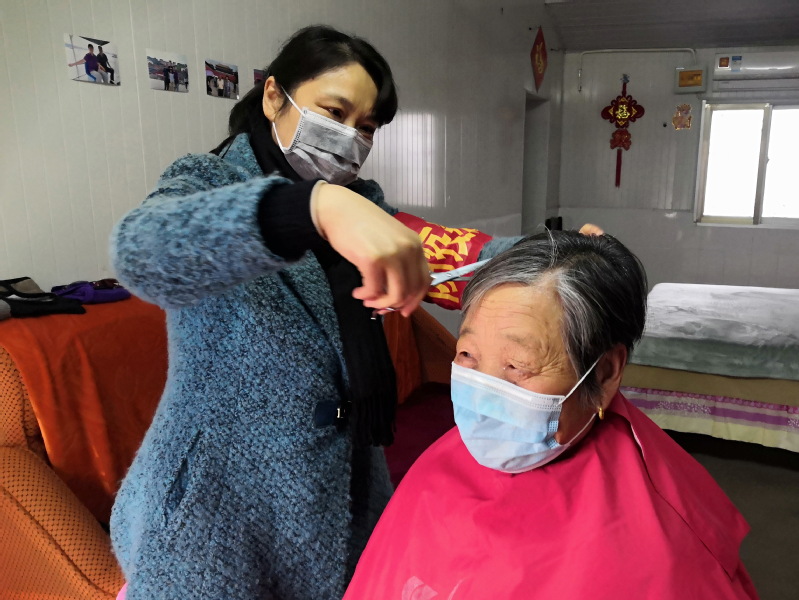 “没有想到我在家里,还有志愿者上门,为我理发、洗头和剪指甲,像姑娘一般地贴心,让我特别感动。”淮海城西居委会振兴小区的居民、80多岁的陈福梅说。