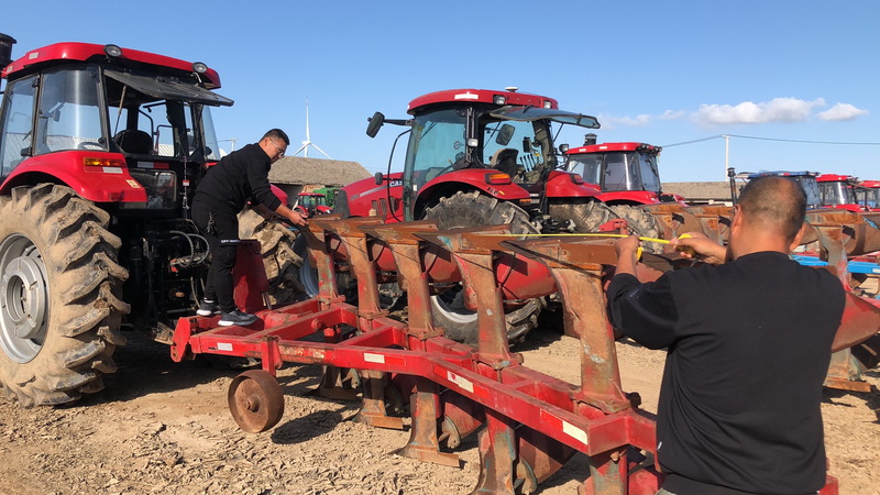 为提升农机机械化对农业的服务本领,真正做到藏粮于机,10月11日上午,在秋收来临前夕,江苏省淮海农场农机服务中心组织农机技术管理人员,对农场三分场农机站内上百台即将参与“三秋”生产作业的农机及其机械,进行安全生产及农机技术状况在内的条目进行检查,确保今年“三秋”工作顺利进行。图为检查人员在测量翻转犁的犁距是否合规及等待农机安全状况待查的农机及机具。