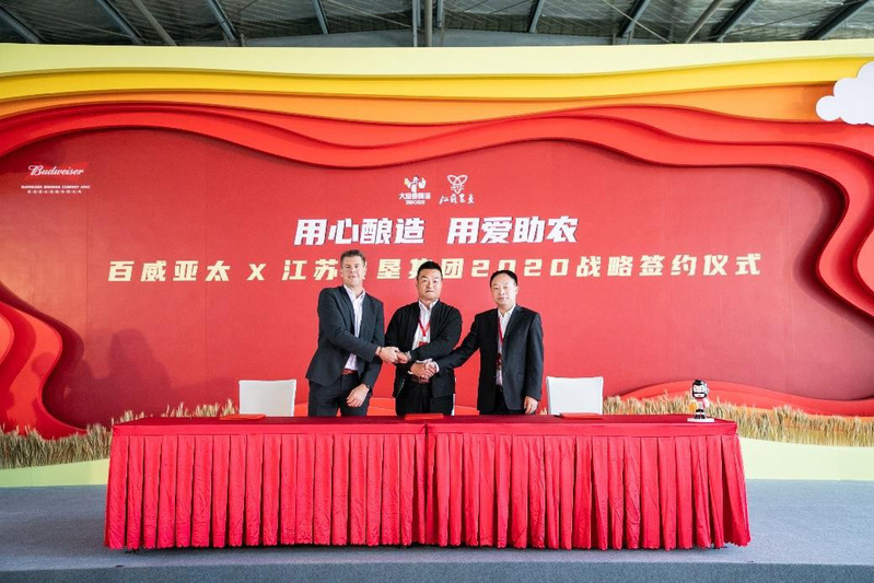 自2016年江苏农垦与百威正式签署战略合作备忘录以来,从育种种植,到田间管理、最优化管理系统,从订单农业,到产业融合发展,双方致力于打造中国啤麦产业化标杆。此次双方继续加大战略深度合作,并以“用心酿造 用爱助农为主题,与来自当地的农民代表共同签署战略合作协议,旨在合力助推国产啤麦发展的同时助力农民增收致富。