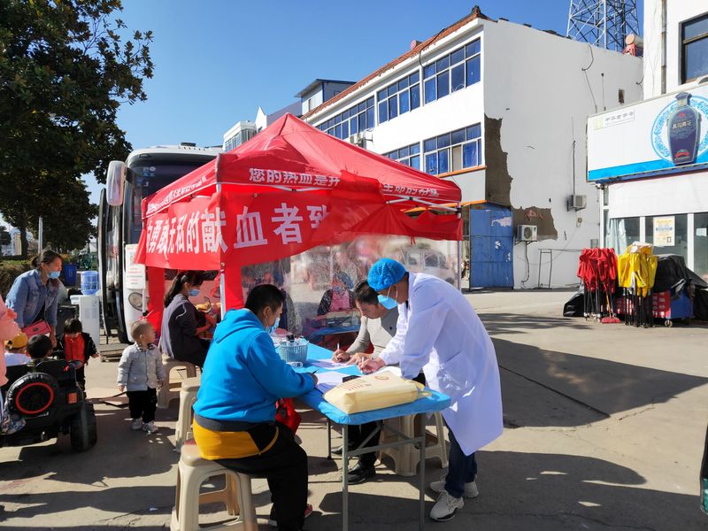 1023日上午,早晨的三河凉气未散,场部中心转盘附近的献血车旁的场景却温暖了所有三河职工居民的心。