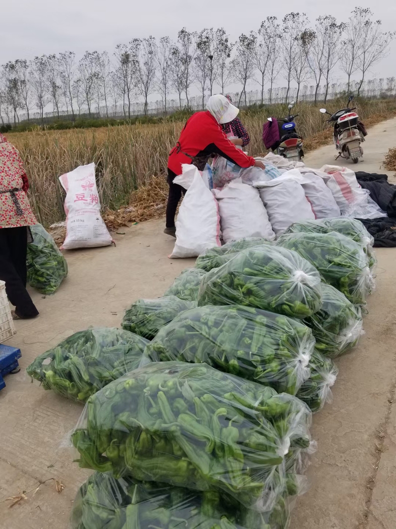 10月28日,走进淮海高效种植园区,我们注意到一摞摞装好袋的青辣椒正待装车发运,10多个当地的员工正在大棚基地内忙着采摘、包装和搬运辣椒,现场一派繁忙景象。