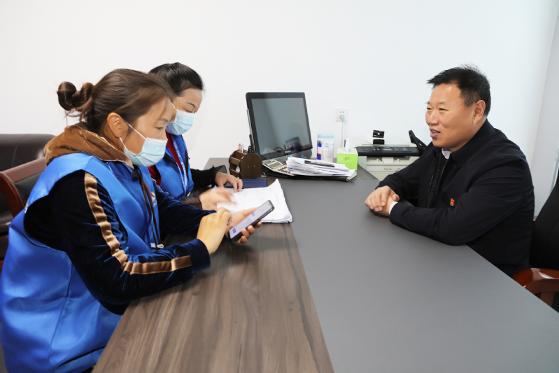 办公室内,新洋领导热情接待了社区普查员,认真倾听本次普查相关知识讲解,并按照普查登记要求,逐一回答了普查员的询问。在认真核实年龄、民族、受教育程度、户籍状况等普查信息后,郑重地签上自己的名字,顺利完成了人口普查登记工作。登记结束后,新洋领导对普查员认真负责的工作态度和严谨细致的工作作风给予肯定,并对全场广大人口普查工作人员表示诚挚的问候和衷心的感谢。