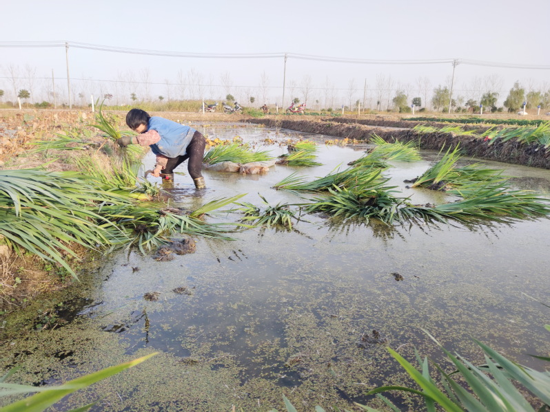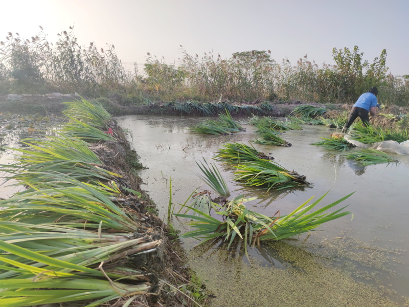 走进淮海爱莲苑水生花卉有限责任公司的苑区内,目前大型荷花、睡莲等大宗植物均已枯萎,而在苑区内仅存的几种绿化植物中,绿色的菖蒲显得十分显眼。苑区内几名员工正在苑内起运菖蒲草,并将菖蒲作为搭配品种来装点城市水生花卉景区。