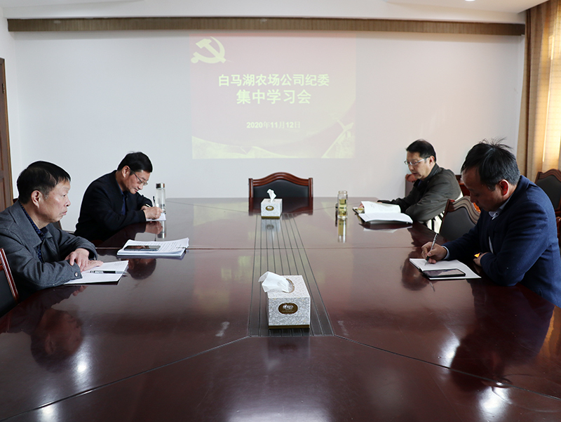 11月12日下午,白马湖农场有限公司纪委书记韩跃武主持召开纪委全体委员集中学习交流会,认真学习党的十九届五中全会精神,学习《习近平谈治国理政》第三卷第十九专题相关章节;围绕开展“学恩来精神、守初心使命”专题教育活动,深入学习习近平总书记《在纪念周恩来同志诞辰120周年座谈会上的讲话》并观看专题片《周恩来的党性之光》和进行学习交流;同时及时传达集团公司相关文件精神,研究部署近期和年底的相关工作和活动安排。