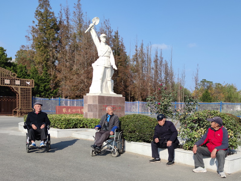 而让这些老军垦们感叹的是,1955年部队完成农场三年建设大任后就开始部队转业,愿意留在淮海农场继续工作的2700多名老军垦,如今年龄最小的也已经86岁的高龄了,目前健在的老军垦们已经不足200人。为此,留在淮海的老军垦战士们,他们时不时地会一起或独自来到这座农建四师纪念碑这座地标前或走进农建四师陈列馆中,追忆当年部队官兵在这里创业建场的历史,当年曾经挥洒汗水进行一生中难以忘怀的激情燃烧岁月,在怀念逝去老战友的同时,感慨着如今美好生活的幸福满满。