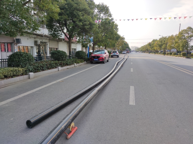 据了解,淮海小城镇天燃气管网在春节前夕将覆盖到农场的场部区域,安装天燃气不仅是方便职工居民生产生活的需要,也是提升人们幸福生活指数的需要,这将告别农场没有天然气的历史,这也将是事关民生工程中的一件大事。图为焊接好的管道在道路旁进行用顶管入地时的镜头。