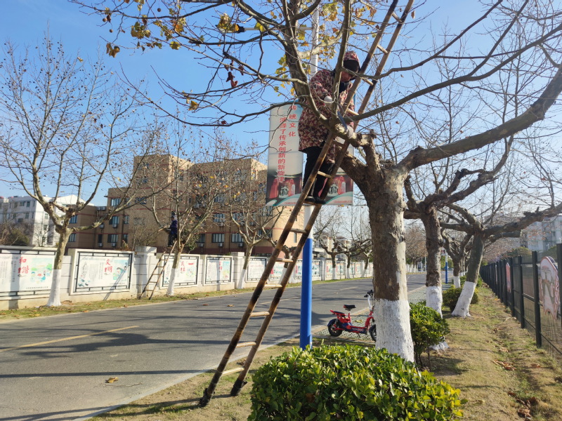 日前,淮海农场有限公司除对绿化带内的低矮灌木正常进行造型整容外,还对绿化树木冬季修剪也借冬日开启拉开帷幕,我们看到,在淮海创业路、振兴路、群乐路、方波路的大型梧桐树木的枝干上,一些农场环卫绿化部位的员工正在爬着梯子进行树上修剪,同时在不破坏整体树型的前提下,锯除遮挡监控及照明的低垂树枝来展开合理修剪。梧树树修剪后,他们还对所有行道树木进入冬眠的紫薇树等枯枝、杂乱枝等进行修剪,为大树提干之外,还将去除枯死枝、病虫枝、交叉枝,让树木通透,更好地有利于树木采光通气,提升树冠的形象。