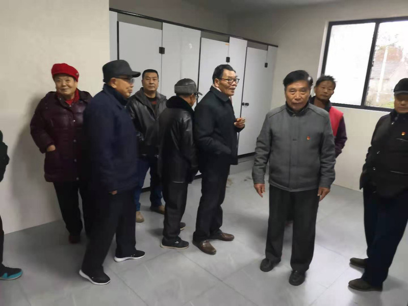 图为支部党员对民生工程卫生厕所赞不绝口