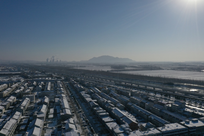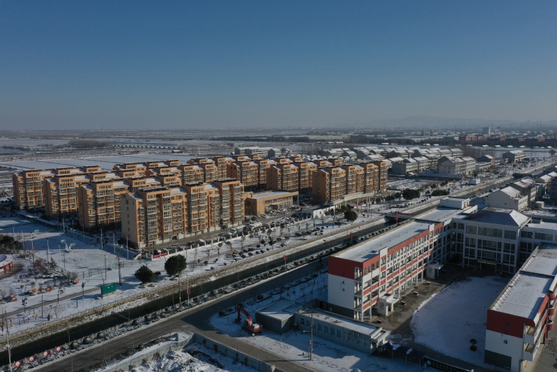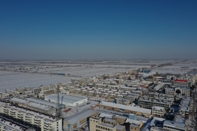 雪后初晴,利用无人机航拍记录这一美丽的场景。只见岗埠农场小城镇大雪过后一片白色的景象,到处是白雪皑皑,与蓝天形成了强烈的对比,构成了一幅幅生动的蓝天白雪图。