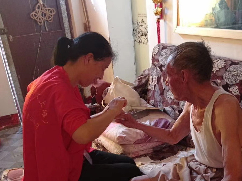 据了解,年龄达到80岁的老人,在淮海是极其庞大的一个群体,许多老人家庭、甚至一些孤寡老人因为子女不在身边而承受着异常的孤独,有时还要备受病痛的折磨。而淮海居家养老照护员的出现和居家养老社会服务的开展,无疑为他们开辟了一条亲情式的服务通道,能让他们在养老服务和社会各界的亲情关爱中,享受颐养天年之乐和生活的美好。图为金实银康居家养老服务人员在上门服务时的镜头。