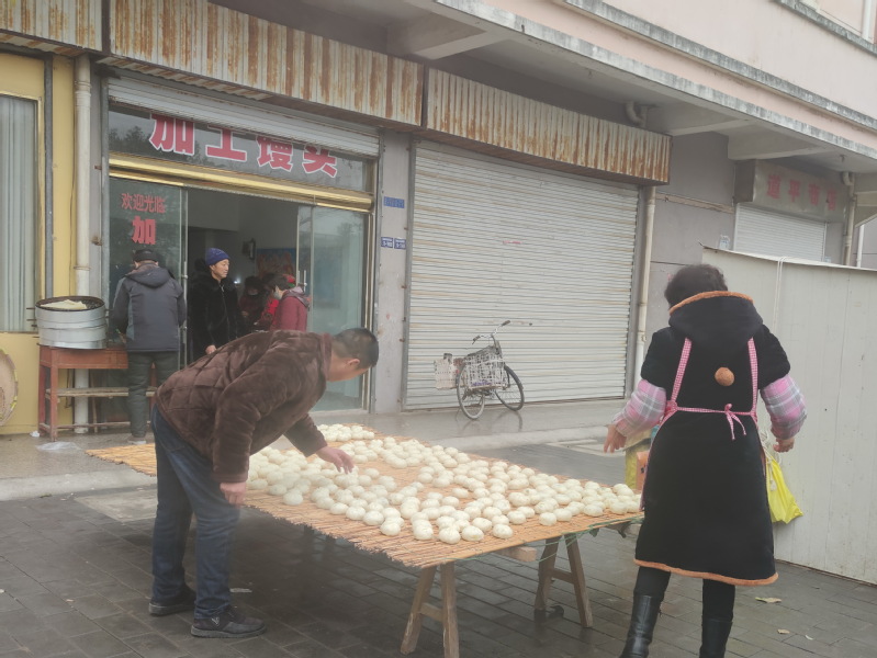 已经是60岁的贾长梅是淮海农场淮海路15号楼的居民,每年她就利用春节到来的时节,利用夫妇两用大笼蒸馒头过年的手艺,在为广大职工居民提供服务的同时,也通过自己的双手和雇请部分服务人员,为大家提供逢年过节蒸馒头的便利,此举受到了众乡邻的欢迎。