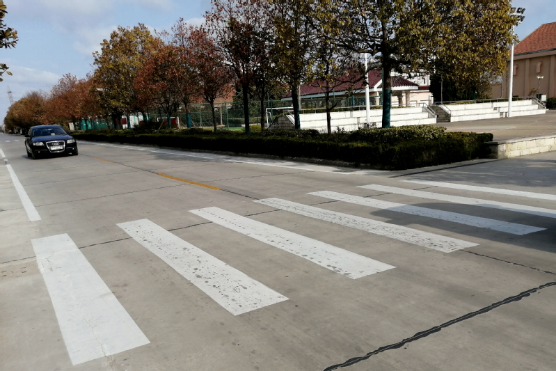 图为新农三村住宅区道路路面标注的斑马线