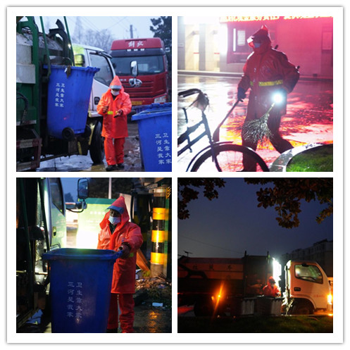 由于约好了跟踪拍摄垃圾转运全过程,本以为大雨影响,垃圾转运会停或是雨停后再进行,五点接到社区环卫负责人叶微的电话,下雨天照常进行。在跟踪拍摄过程中得知,一年365天,除了春节休息两天,其余时间无论刮风下雨,天寒地冻,他们没有一天间断过,只有雨太大时,他们会躲躲雨,凌晨当三河人都还在酣睡中,他们已经开始了一天的工作,脏、累是他们工作的最大“亮点”。