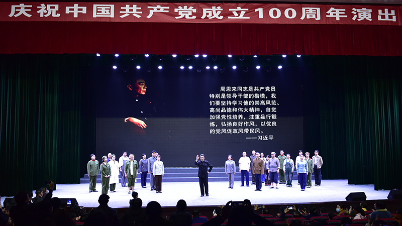 周恩来,这是一个光荣的名字、不朽的名字。周恩来同志是近代以来中华民族的一颗璀璨巨星,是中国共产党人的一面不朽旗帜。作为淮安市委庆祝中国共产党成立100周年献礼作品之一,该剧以习近平总书记提出的不忘初心、坚守信仰,对党忠诚、维护大局,热爱人民、勤政为民,自我革命、永远奋斗,勇于担当、鞠躬尽瘁,严于律己、清正廉洁这六个杰出楷模为主线,撷取了黄河抢险、送侄回乡、故乡行、一件珍贵的衬衫、顾全大局、西花厅不灭的灯光、最后的岁月等七个篇章,以艺术的手法还原或再现了周恩来作为中国共产党人杰出楷模,在为中国人民谋幸福、为中华民族谋复兴、为人类进步事业而奋斗的光辉一生中的一些典型情景,再现和展示了周恩来这一伟岸的精神丰碑,塑造和彰显了一名优秀中国共产党人的光辉形象,使大家深受感染并深爱感动。纷纷表示要深入学习周恩来对理想信念坚定执着、对党的事业忠贞不渝、对革命工作高度负责、对人民群众情怀至深、对自我修养严格要求的精神风范,始终做到不忘初心、坚守信仰,牢记手中的权力是党和人民赋予的,是用来为人民服务的,一身正气、两袖清风,敬畏人民、敬畏组织、敬畏法纪,更好地加强自身建设,做一个堂堂正正的共产党人,用实际行动在新时代新征程上作出各自应有的贡献。