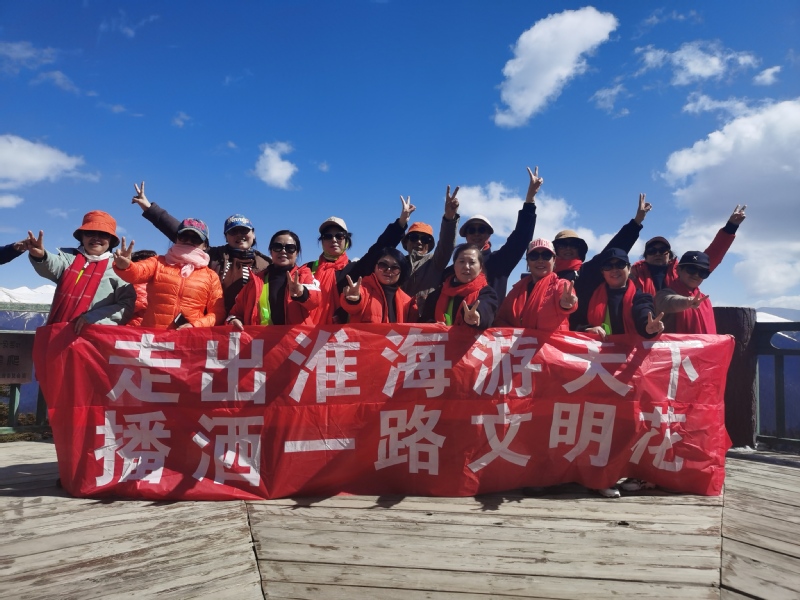 路上千般景,最美是文明。这对有着20多年省市文明单位的淮海农场职工居民来说,文明出行不仅是社会进步的重要标志,更是农场职工居民外出展示农场军垦传统文化形象的一个窗口,大家也借文明旅游,较好地展示着淮海人的团队素质和个人修养,也反映了一个人身后农场的光辉形象和文明底色。为了更好地展示淮海人的文明修养,本次赴西藏旅游的团队在出发前,还特地制作了“西藏山水皆风情 绿色文明伴我行”“走出淮海游天下 播洒一路文明花”的横幅标语,让文明标语为旅游增添风采。