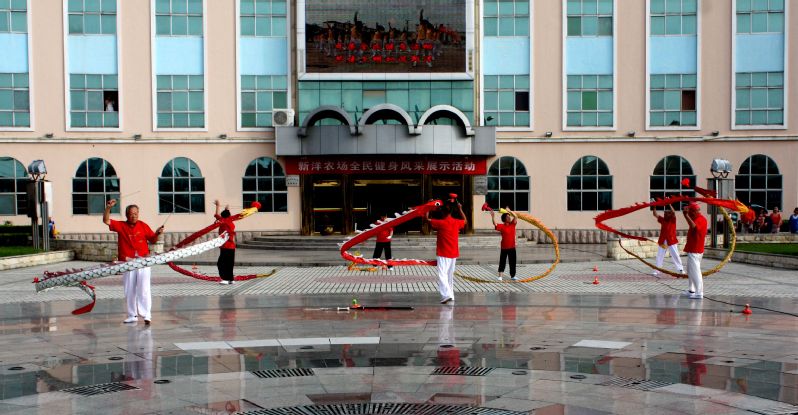 新洋农场公司全民健身活动非常活跃,每当晨曦初露或是华灯初放之时,农场场部大大小小的运动场上,打太极拳、舞太极剑、打腰鼓、玩柔力球、跳广场舞等群众体育活动十分活跃,其中抖空竹是众多活动中一道亮丽的风景线,只见那空竹在运动者手中自由地飞舞,那空竹发出嗡嗡的响声,十分悦耳。