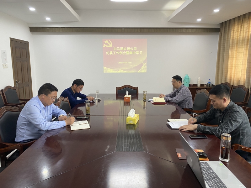 5月12日下午,白马湖农场公司纪委书记韩跃武召集全体委员召开集中学习暨5月份例会,认真学习习近平总书记重要讲话,及时传达集团纪委5月7日召开的连云港淮安片纪检工作座谈会精神和相关文件,研究布置近期主要工作。