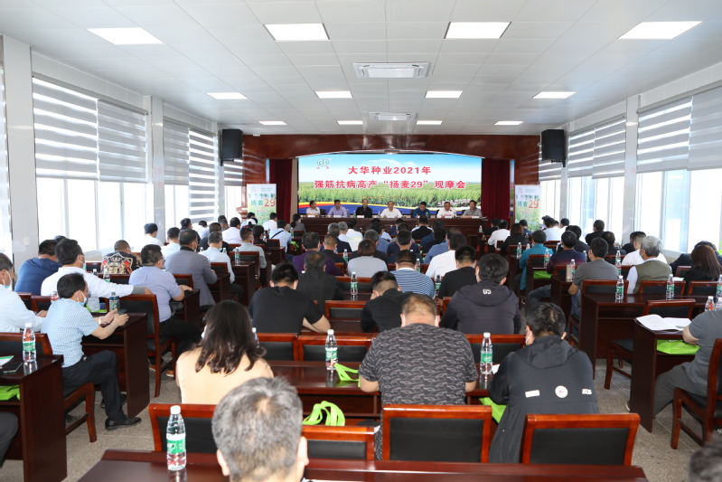 5月18日,大华种业2021年强筋抗病高产“扬麦29”观摩会在新洋召开。大华种业集团有限公司副总经理许海峰,苏垦农发新洋分公司副总经理仰海洲、临海分公司副总经理王学健,江苏里下河地区农科所研究员、“扬麦29”育种专家张伯桥出席会议。大华种业红麦区域县乡两级经销商、部分种田大户120余人参加了活动。会议由大华种业营销部副经理吕以忠主持。