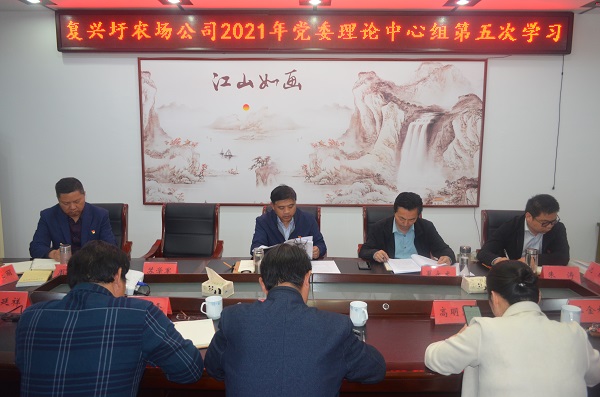 519日下午,复兴圩农场有限公司党委组织召开2021年第五次党委理论中心组学习会,中心组全体成员参加了学习,复兴圩领导班子成员赵军场、夏永龙、周国才、朱涛出席会议,会议由党委书记、董事长赵军场主持。