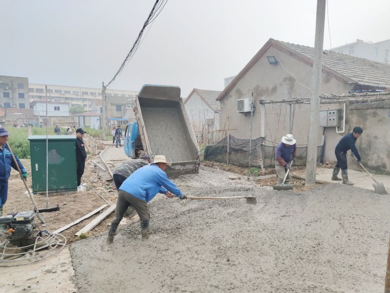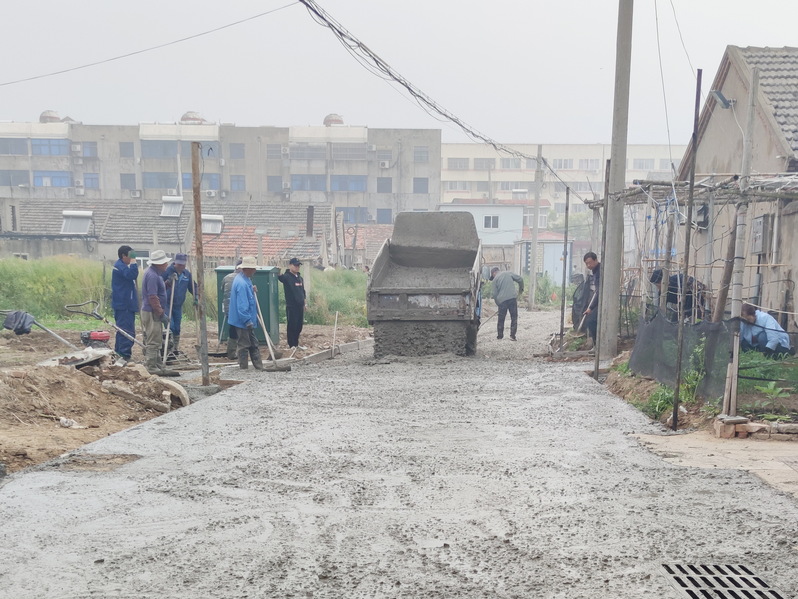 5月27日上午,我们在淮海农场朝阳小区内看到,一辆水泥搅拌车正在淮海路上将罐内的水泥沙浆,正源源不断地流进小型拖拉机内,对已经处理好的朝阳小区的基础路面进行铺设,引得了周边小区职工居民的纷纷观看,盛赞将这条约2米宽的破损小路拓宽到3.5米能进车辆的大路,这条新道路的建成,将大幅度地提升职工居民的幸福指数,彻底解决人们出行安全的问题。