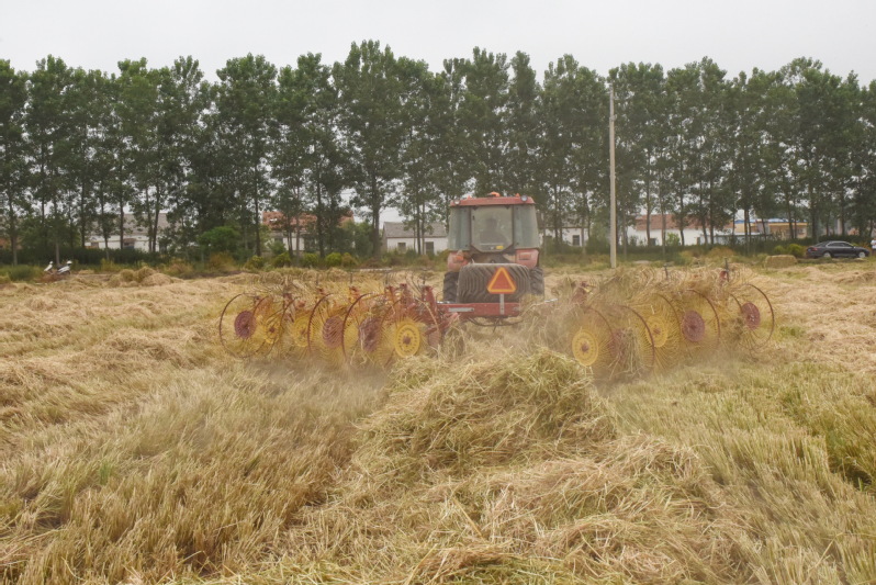 近年来,淮海农场麦稻秸秆机械化还田率一直保持100%。在秸秆还田的基础上,农场从实际出发,把发展秸秆综合利用作为突破口和着力点,推动秸秆向农用为主、多元利用的方向发展,更好的保护农业生态和粮食生产,不断巩固和提升农场绿色发展的环境优势。图为翻草机、打捆机及装载机在作业时的镜头。