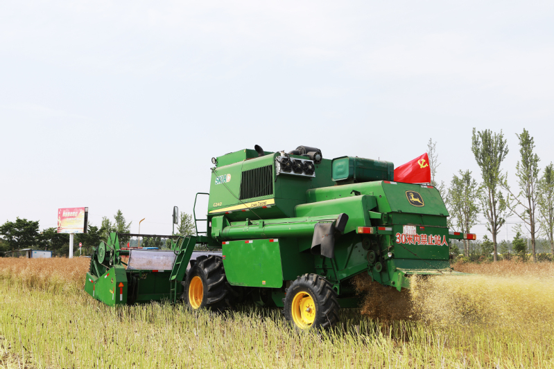 据苏垦农发新洋分公司农业中心数据统计,截至6月6日下午,分公司本部4063.6亩油菜完成百分之99的收割任务。连日来,大型收割机在油菜地里开足马力,来回穿梭,轰隆隆的机器声中,一株株油菜被收割机飞快吞进肚里,脱粒、装载一气呵成,机尾吐出的秸秆碎末也被均匀撒在田间,过程迅速而流畅。