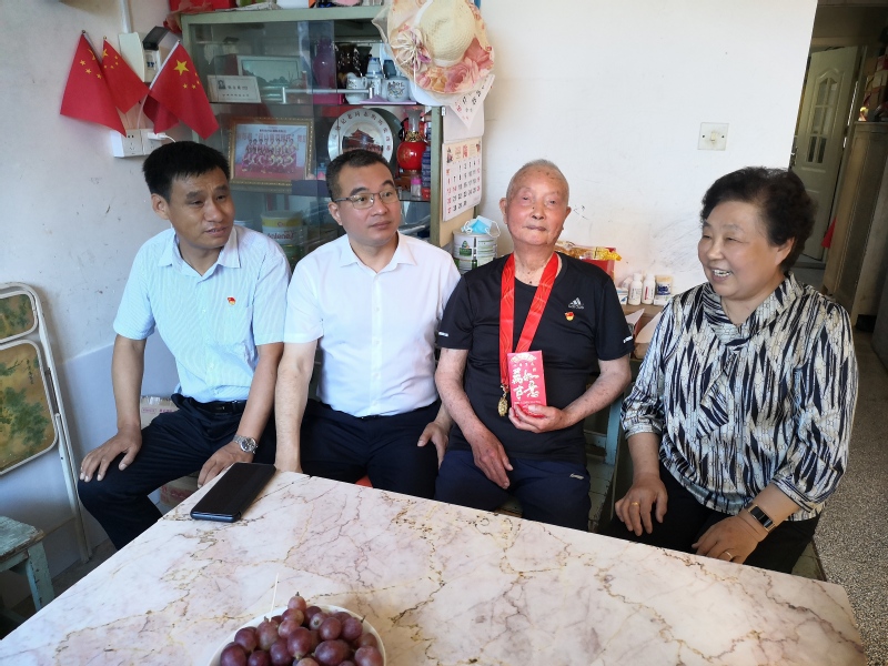 武正芳主席代表县老龄委向他送上诚挚的问候,对他为抗战作出的贡献表示感谢。并与糜老促膝交谈,关切地询问日常生活和身体状况,一同追忆峥嵘岁月,感悟红色精神,共话改革发展成就。